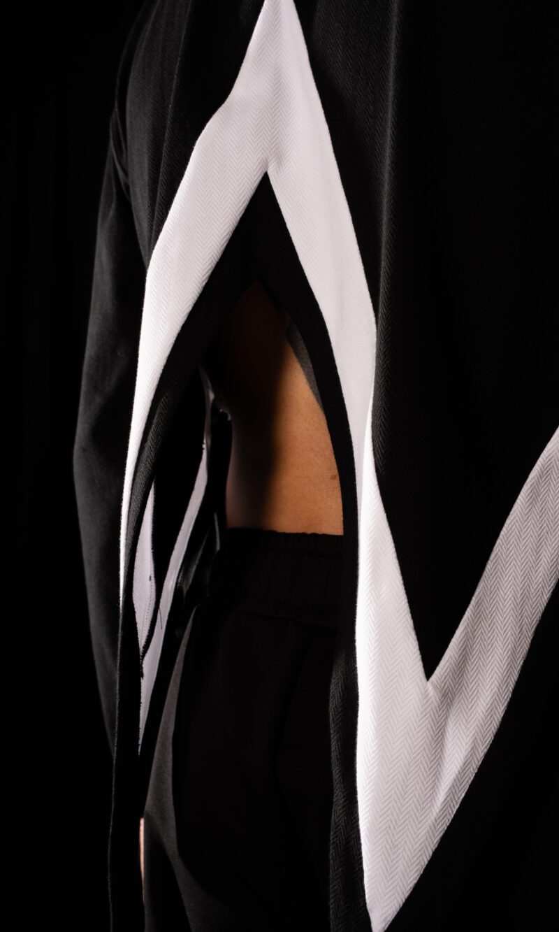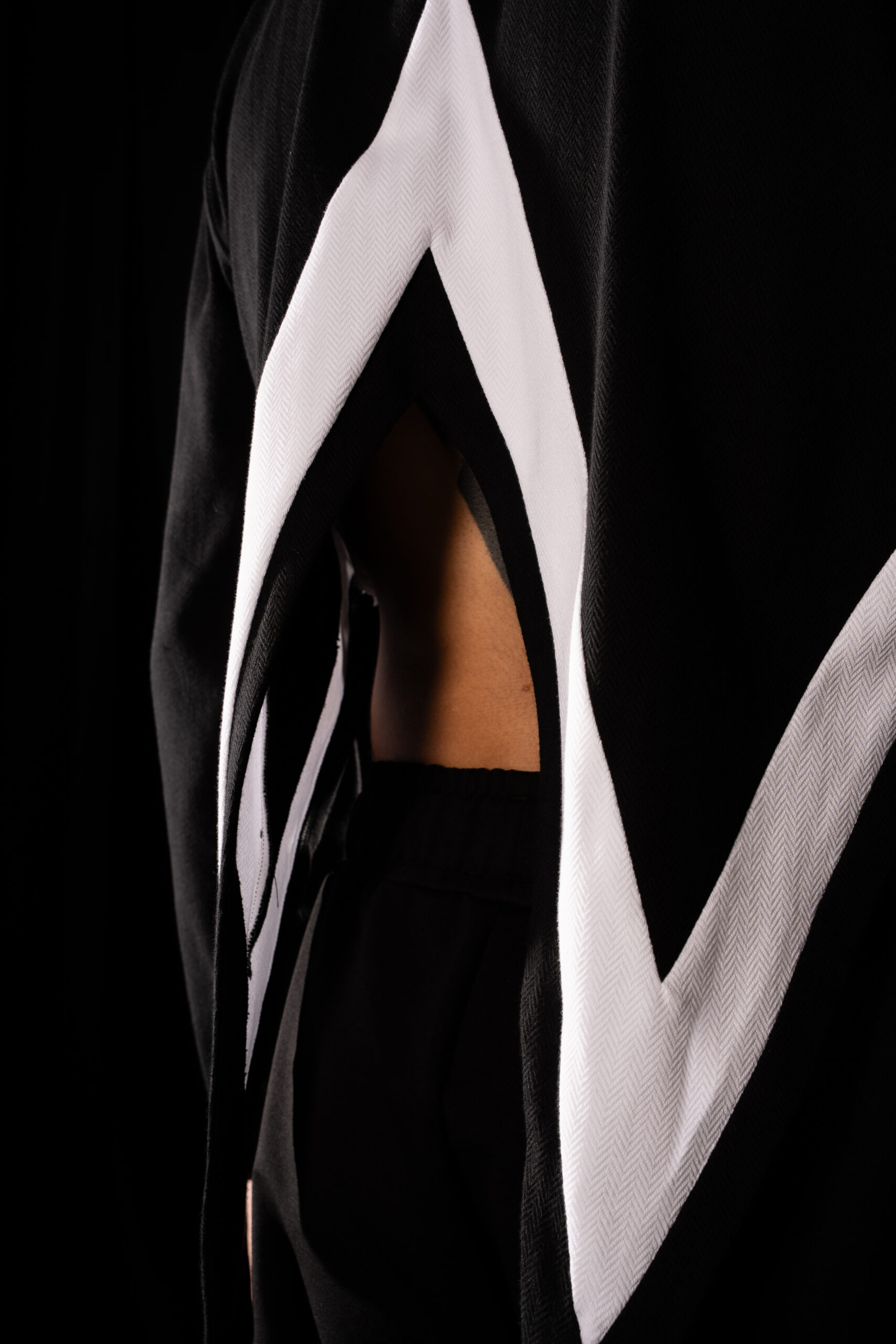white band, highlighting the unconventional silhouette. Crafted from premium cotton with a distinctive