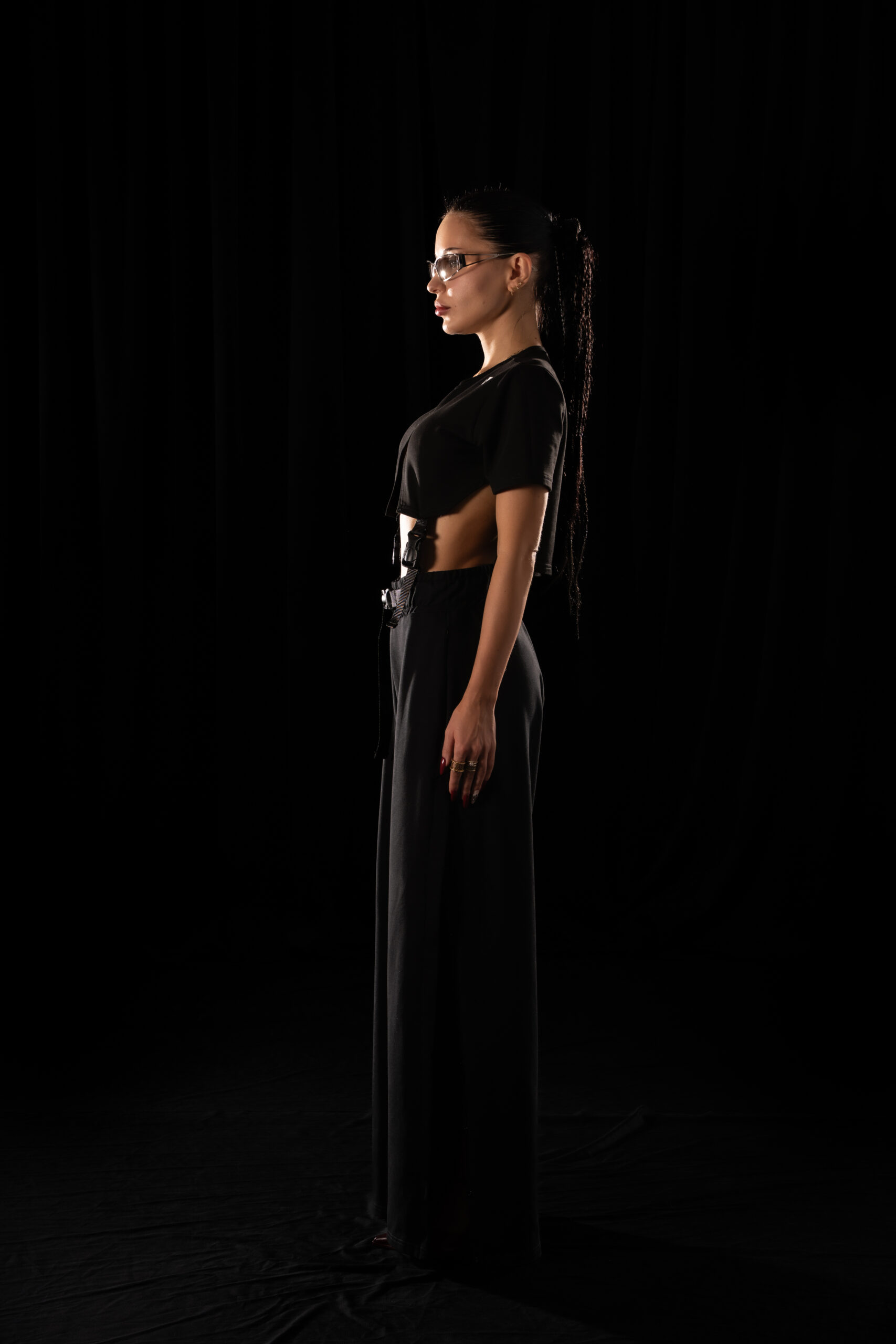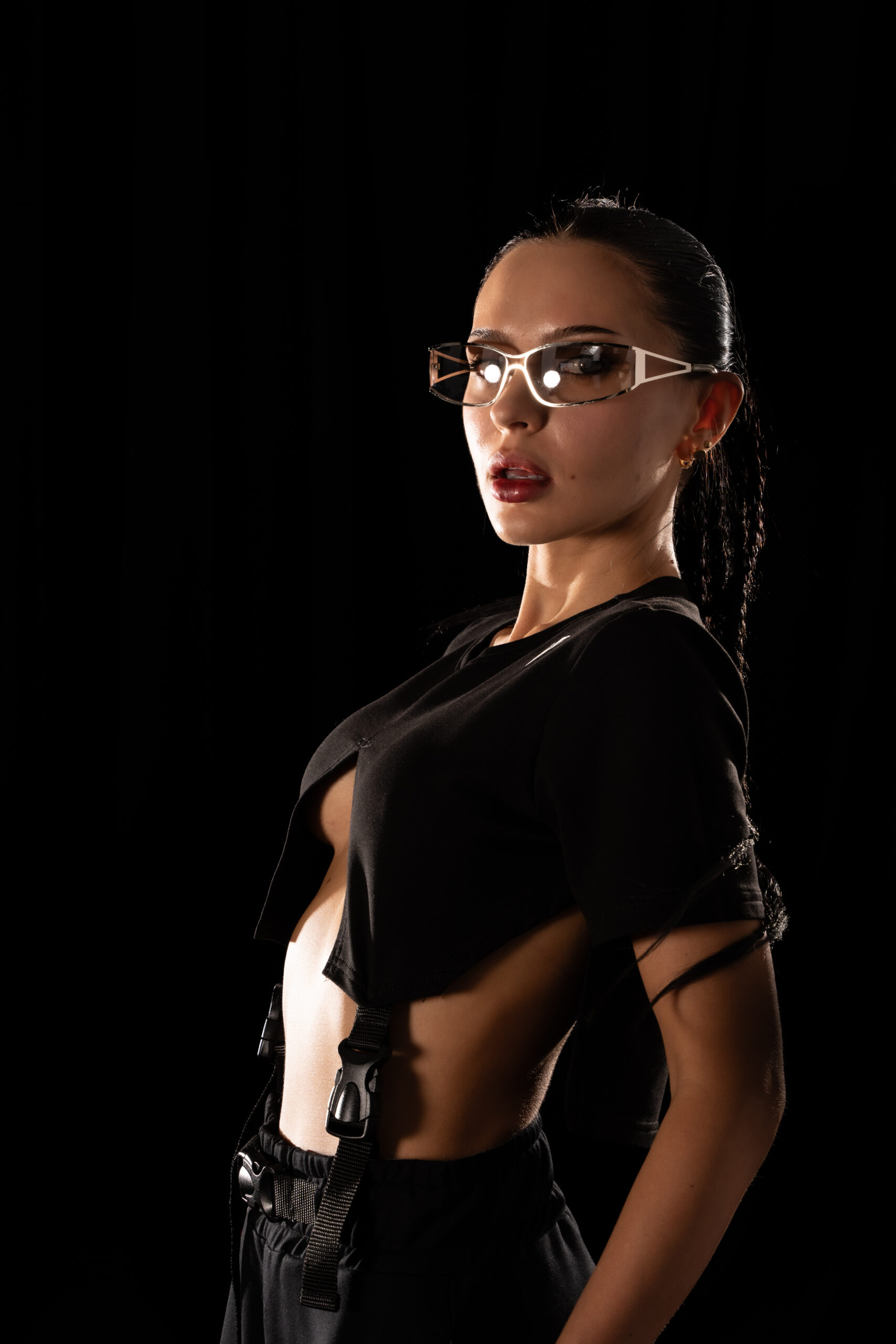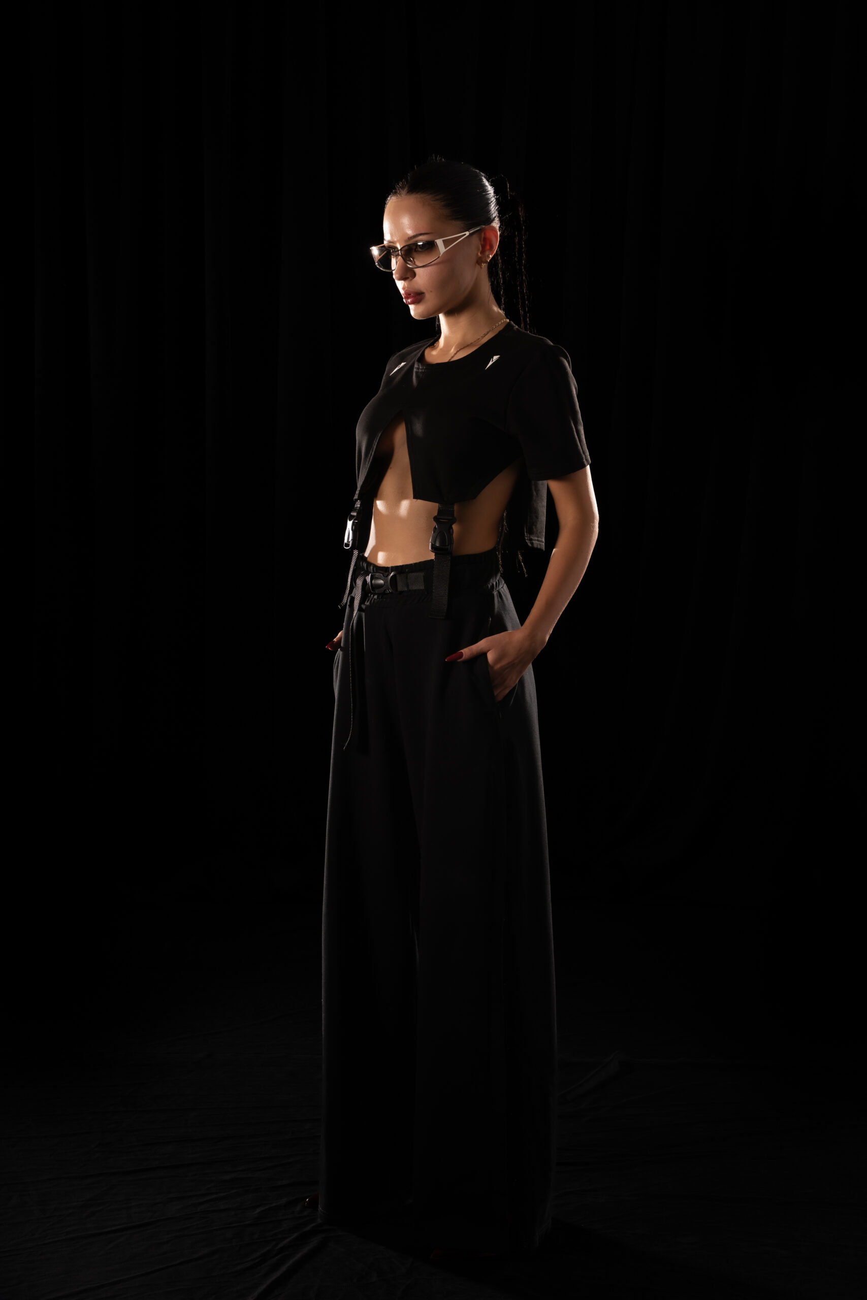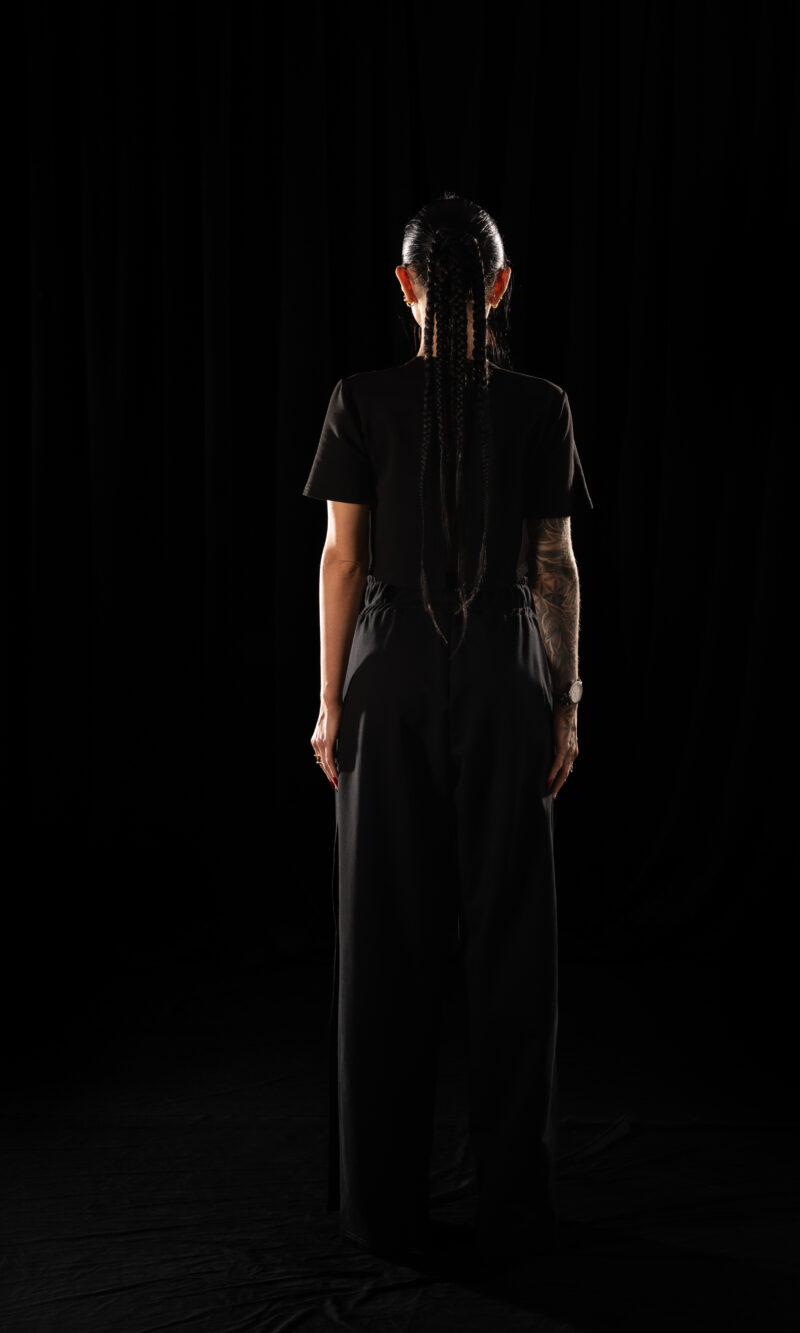 A Crystal Evo T-shirt that breaks the rules of garment construction. Vertical slits run through the center
