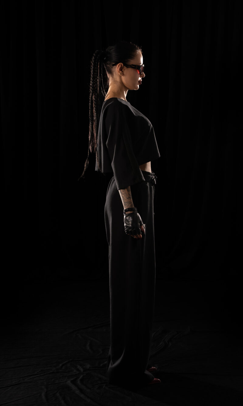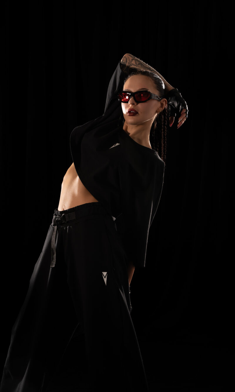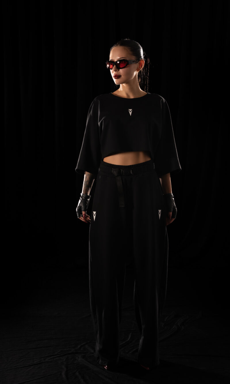Wide-leg Crystal Evo trousers designed for freedom of movement and the relentless rhythm of the night.