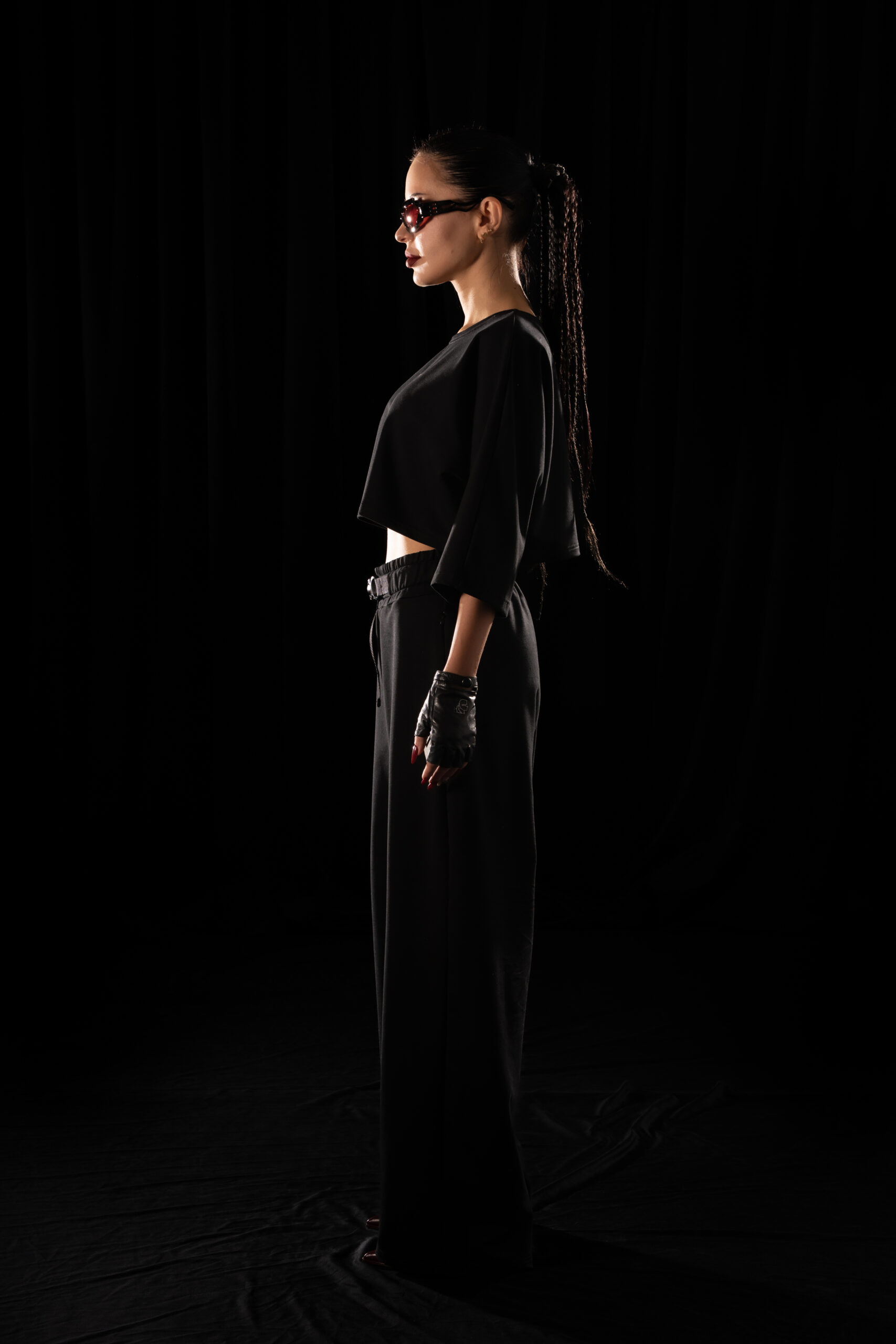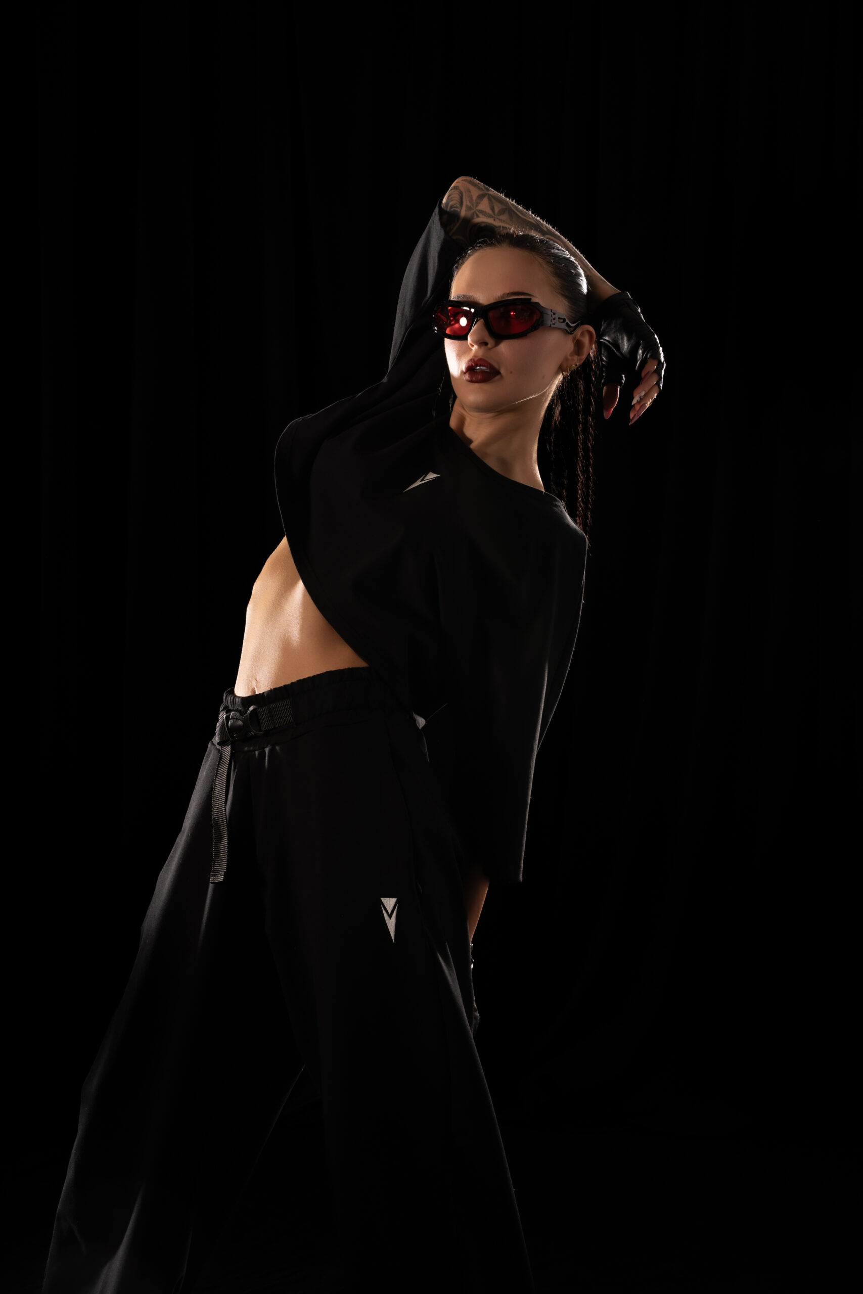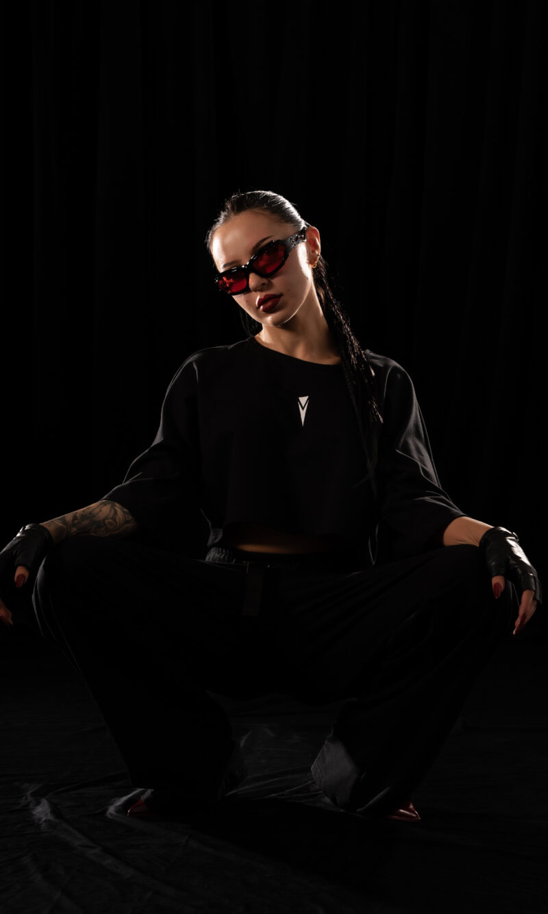 Wide-leg Crystal Evo trousers designed for freedom of movement and the relentless rhythm of the night.