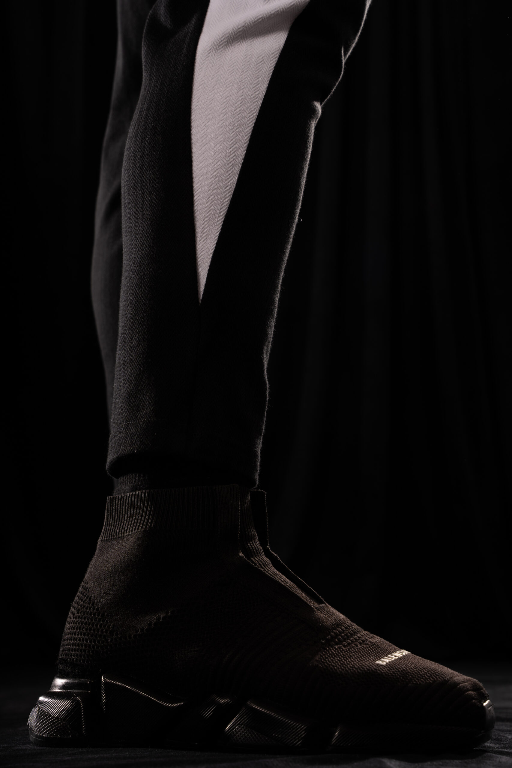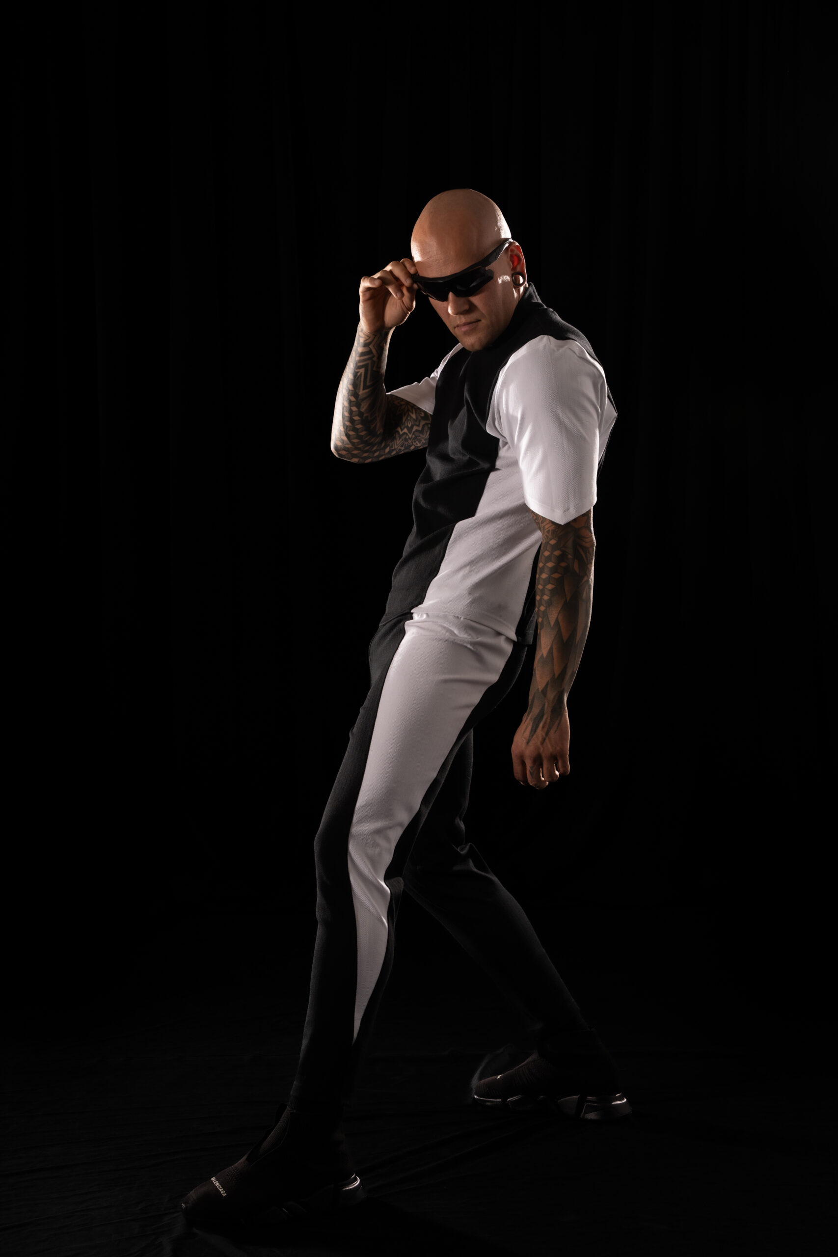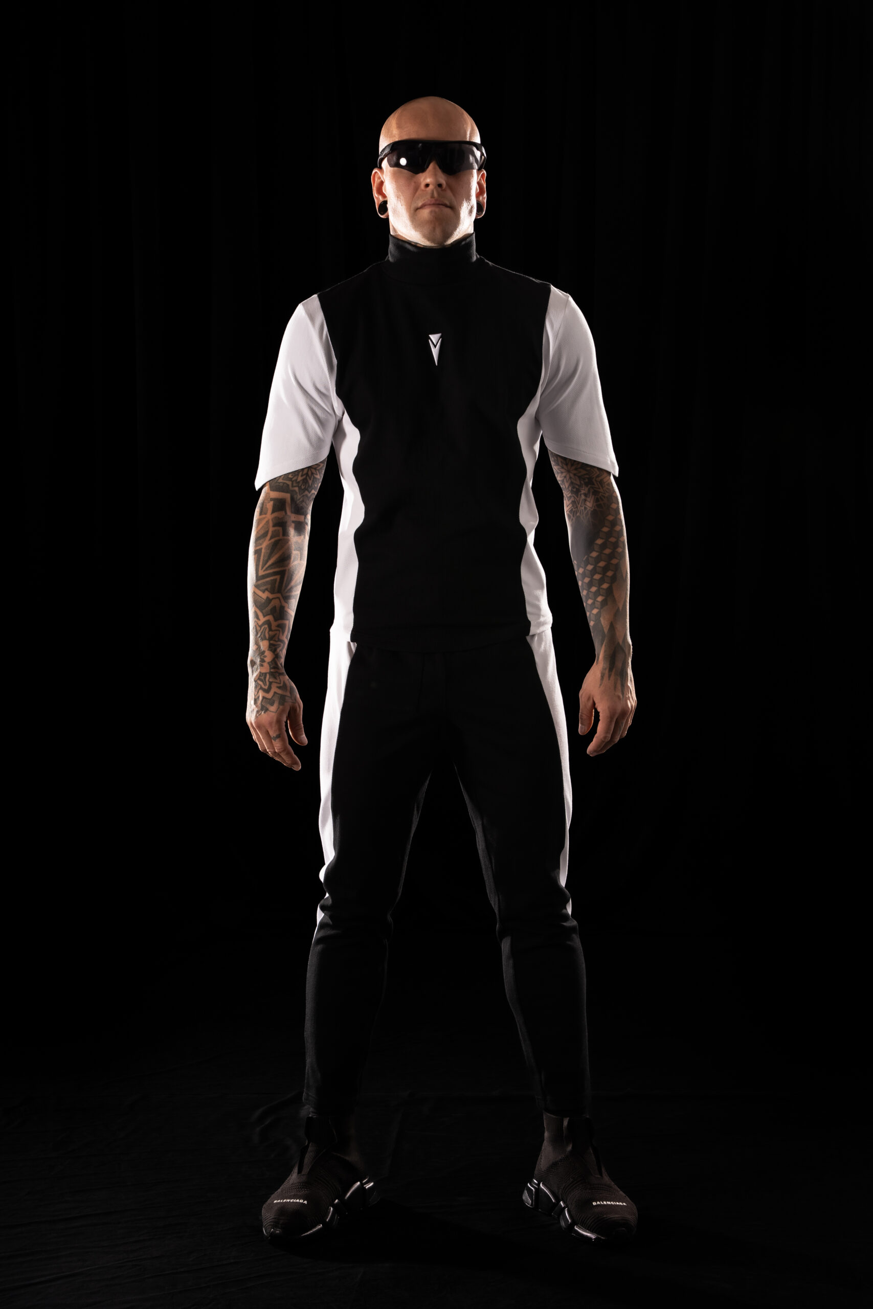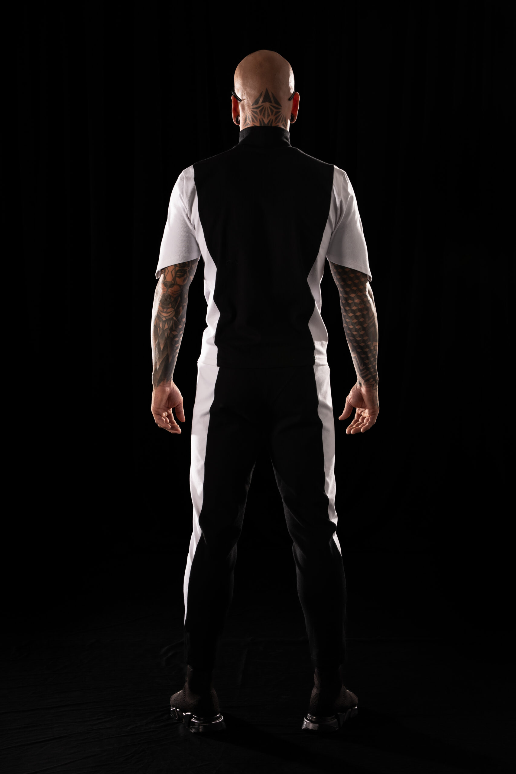Crystal Evo trousers in a matching color-block construction – black central panels and white side panels,