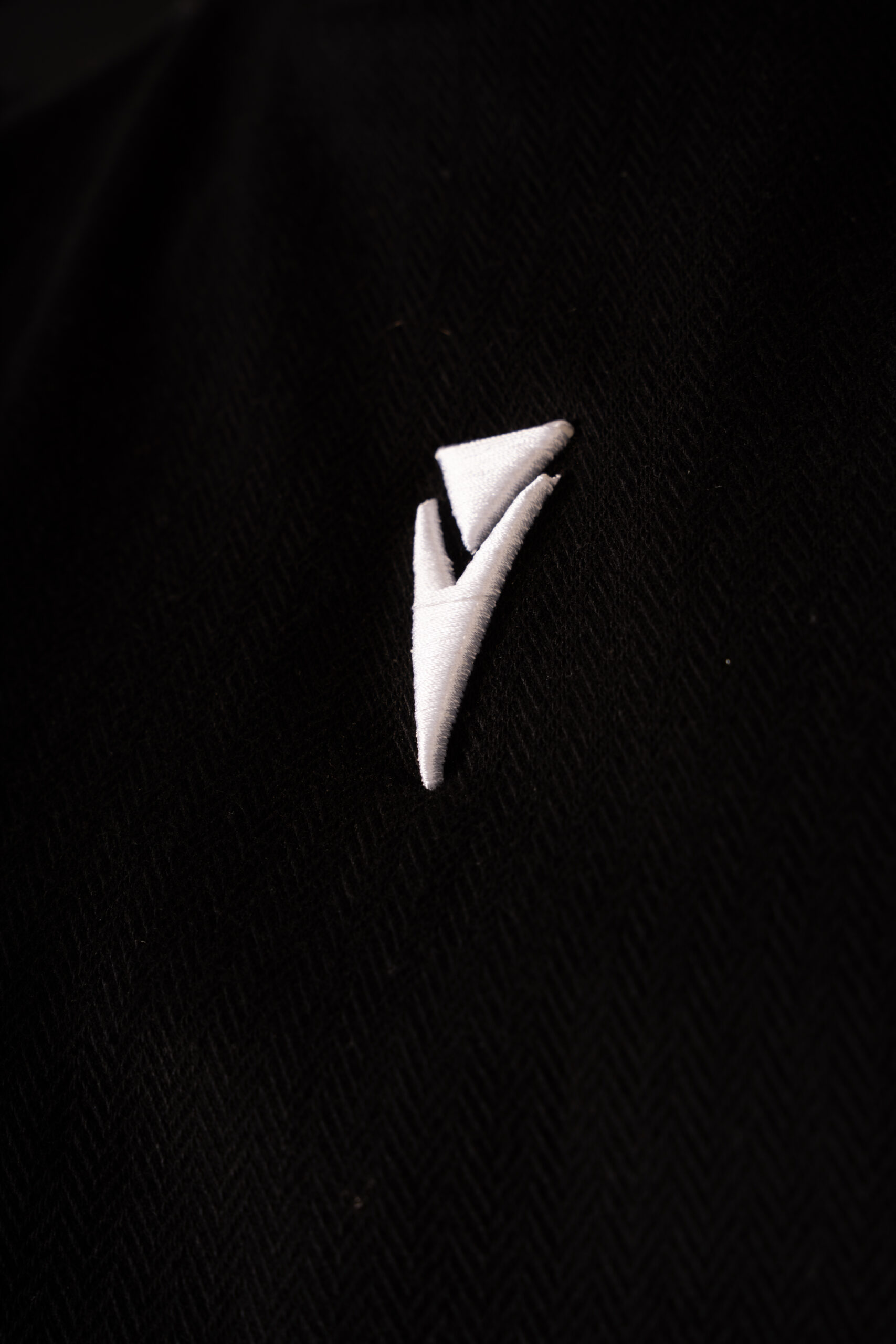 the sharply cut sleeves enhance the silhouette. The front center features a 3D embroidered logo, adding