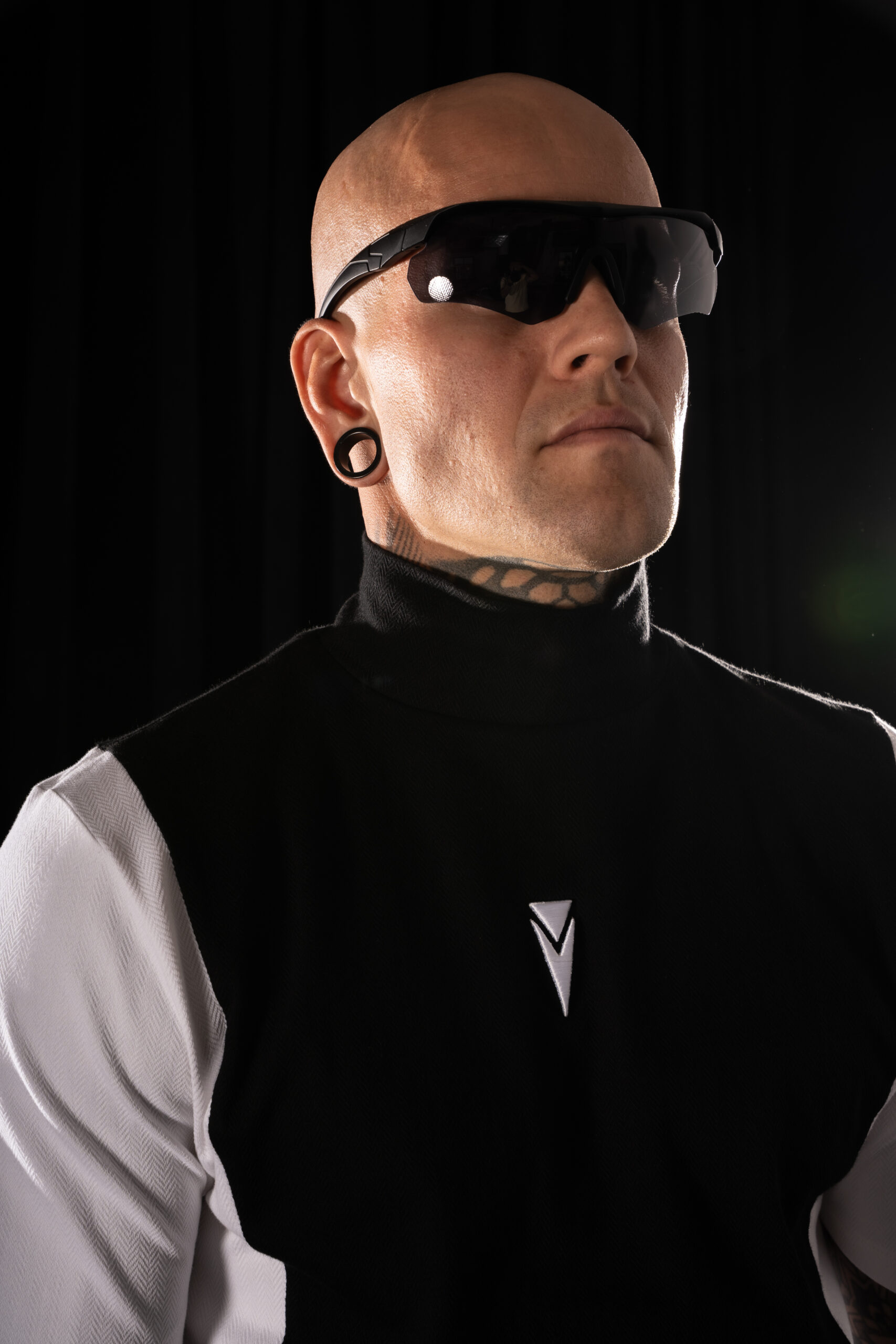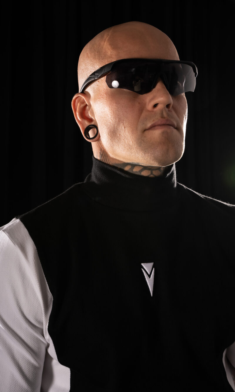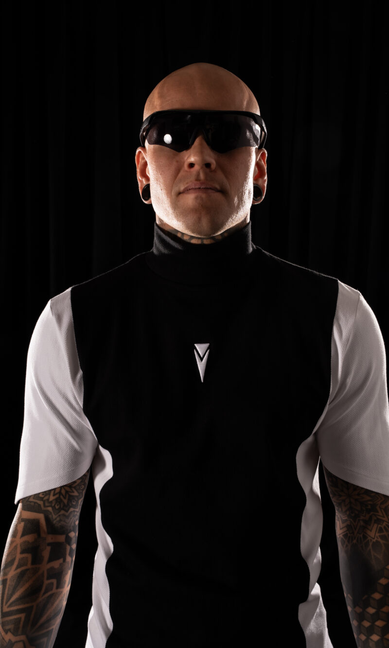 A technical Crystal Evo T-shirt designed in a two-tone composition – deep black in the center and