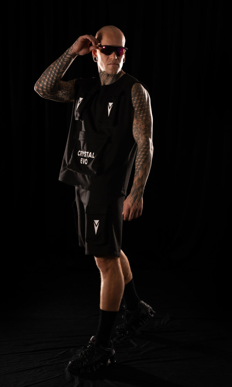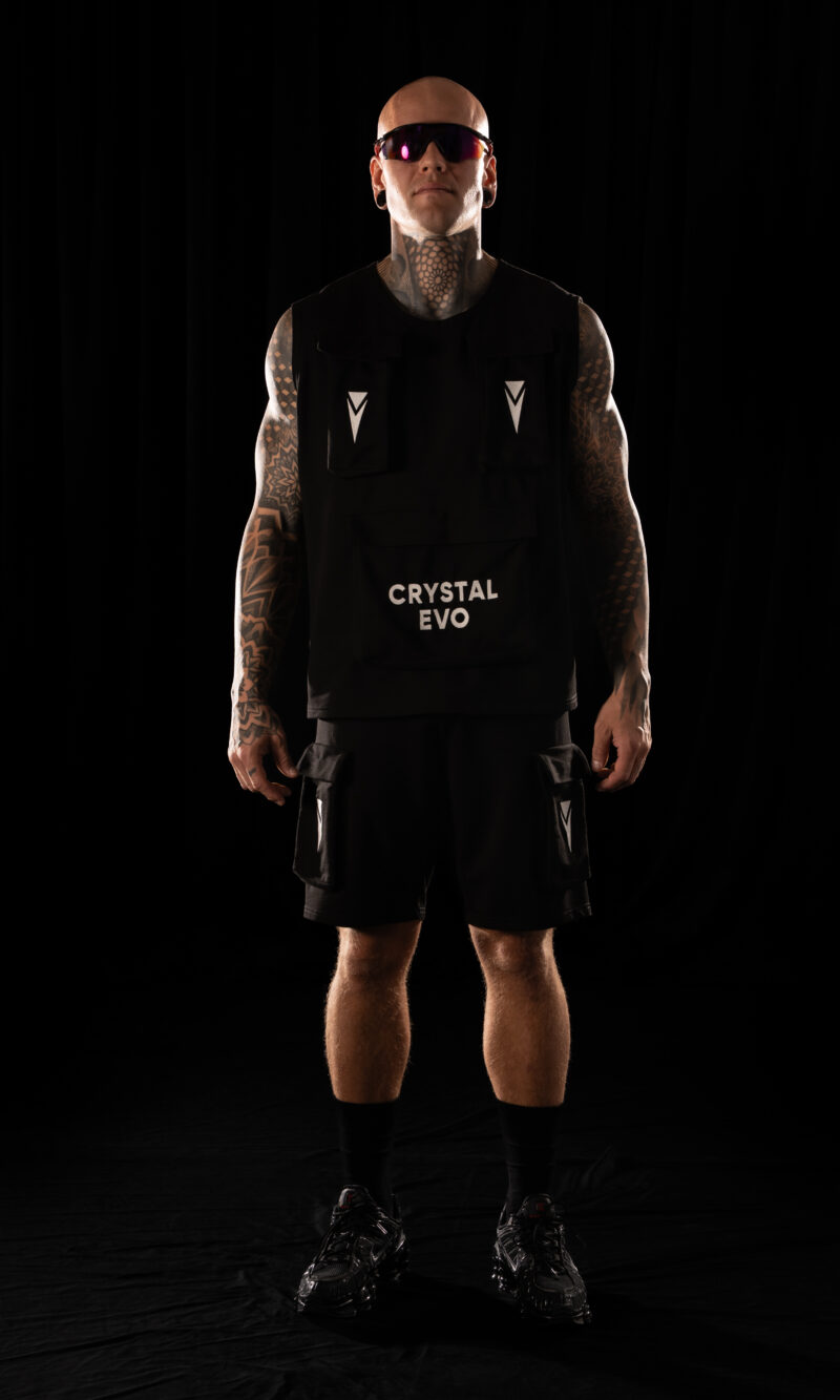 A classic Crystal Evo t-shirt with kimono sleeves, crafted from high-quality cotton. The front features the